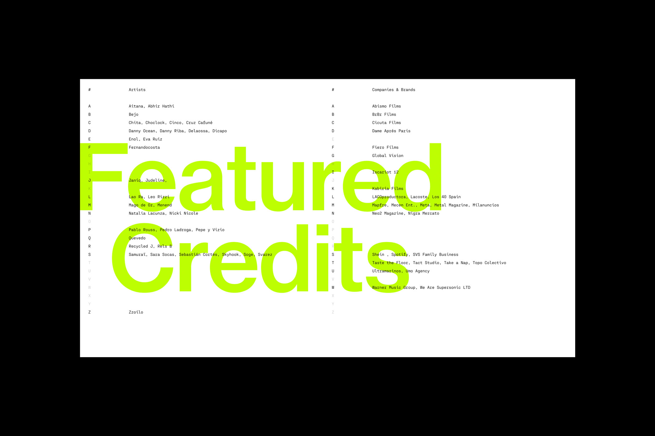 Valydo (2023), Alejandro Serrat (2023), Gudi Foods (2022), Klevo (2022), Gilda Collective (2021), Queima Studio (2021), NocodeHackers (2021), BlackBurguer (2021), Mosaico (2021), Bdeo (2020), PuntoDev (2019), Art & Sushi (2019), Cara Projects (2018), 13K Corp (2016), Adequa (2015), Network Faculty (2014), JM Entertainment (2013)