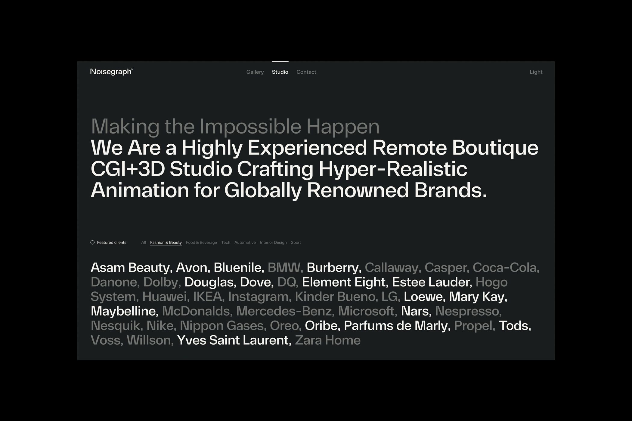 Noisegraph is a highly experienced remote boutique CGI + 3D studio dedicated to crafting hyper-realistic animation and visualisation for globally renowned brands.