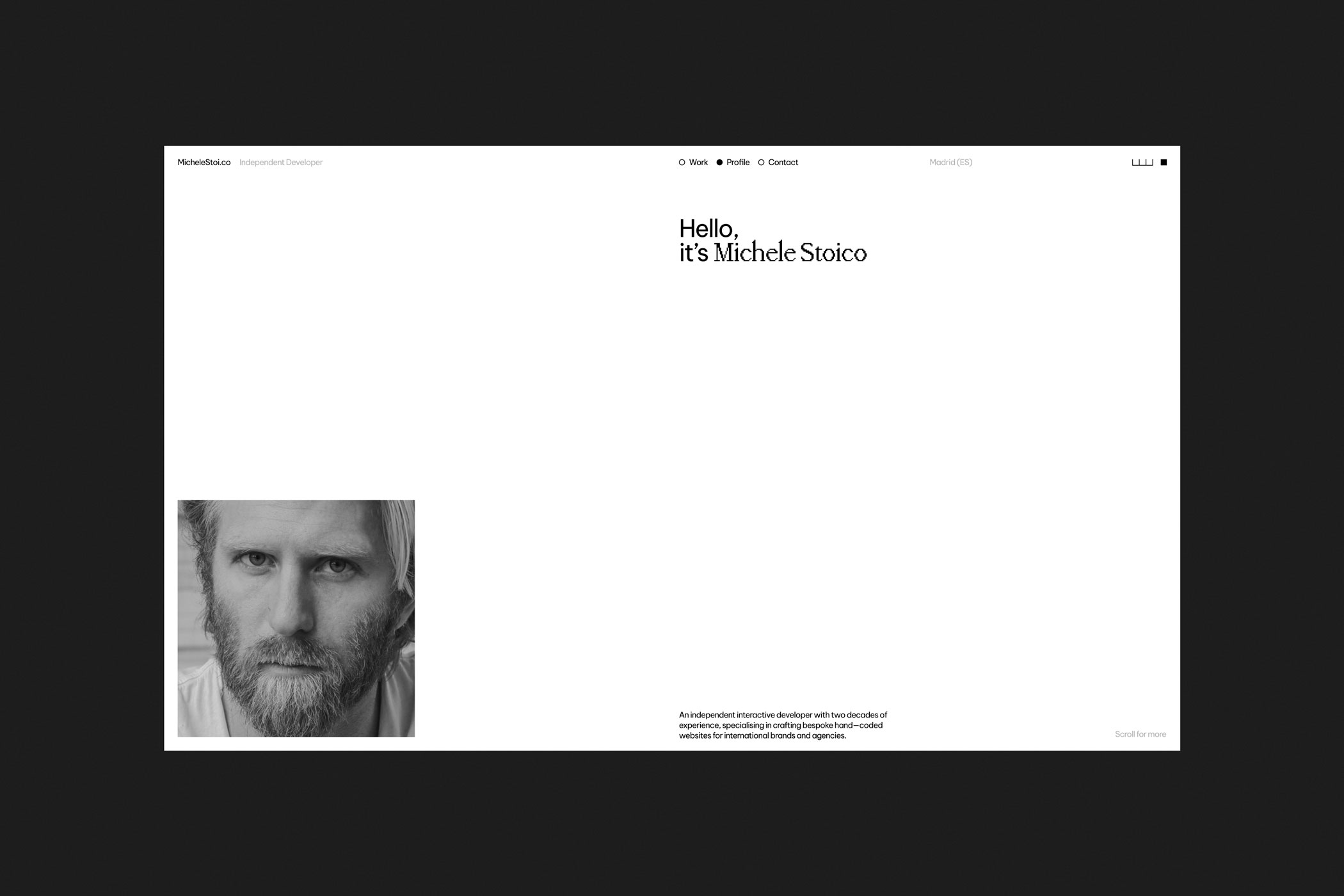 Michele Stoico is an independent interactive developer with two decades of experience, specialising in crafting bespoke hand-coded websites for international brands and agencies.
