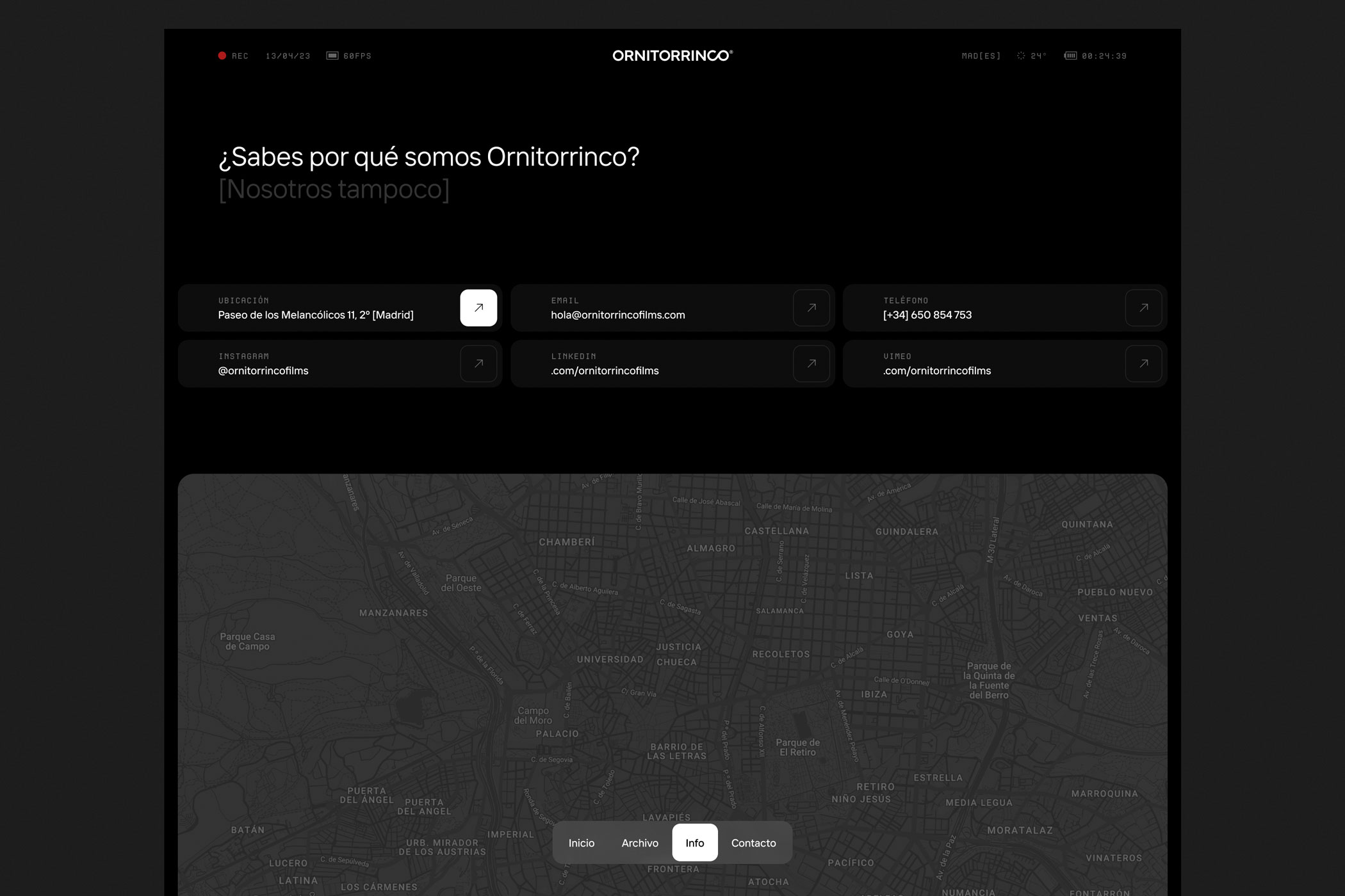 Ornitorrinco is an independent audiovisual production company founded in Madrid in 2013, focused on high-impact advertising and digital content.